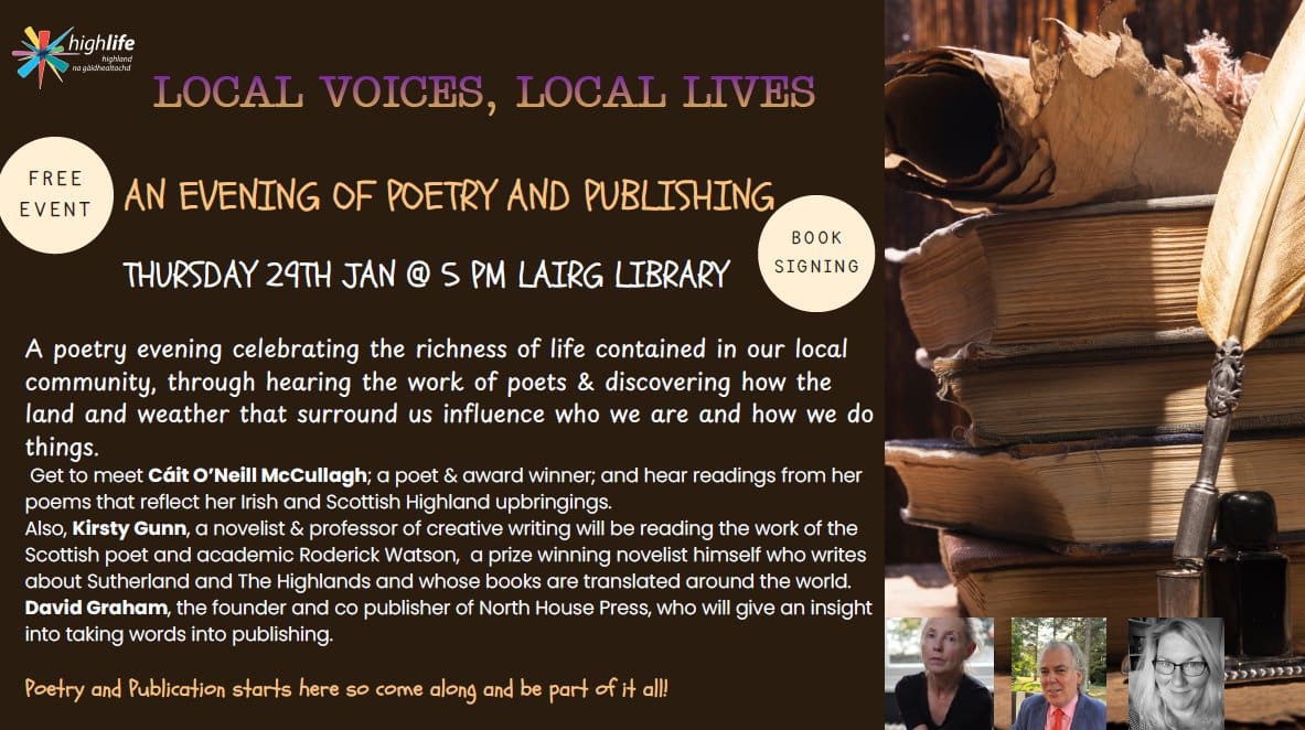 There will be an opportunity to find out more about writing and publishing in the Highlands through discussion and a question and answer session.