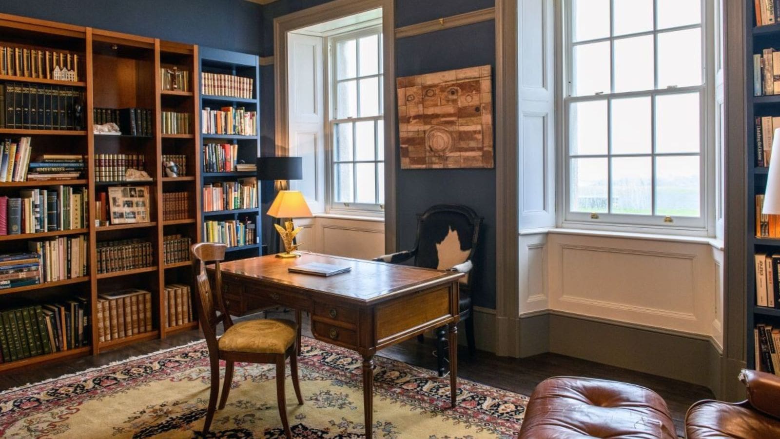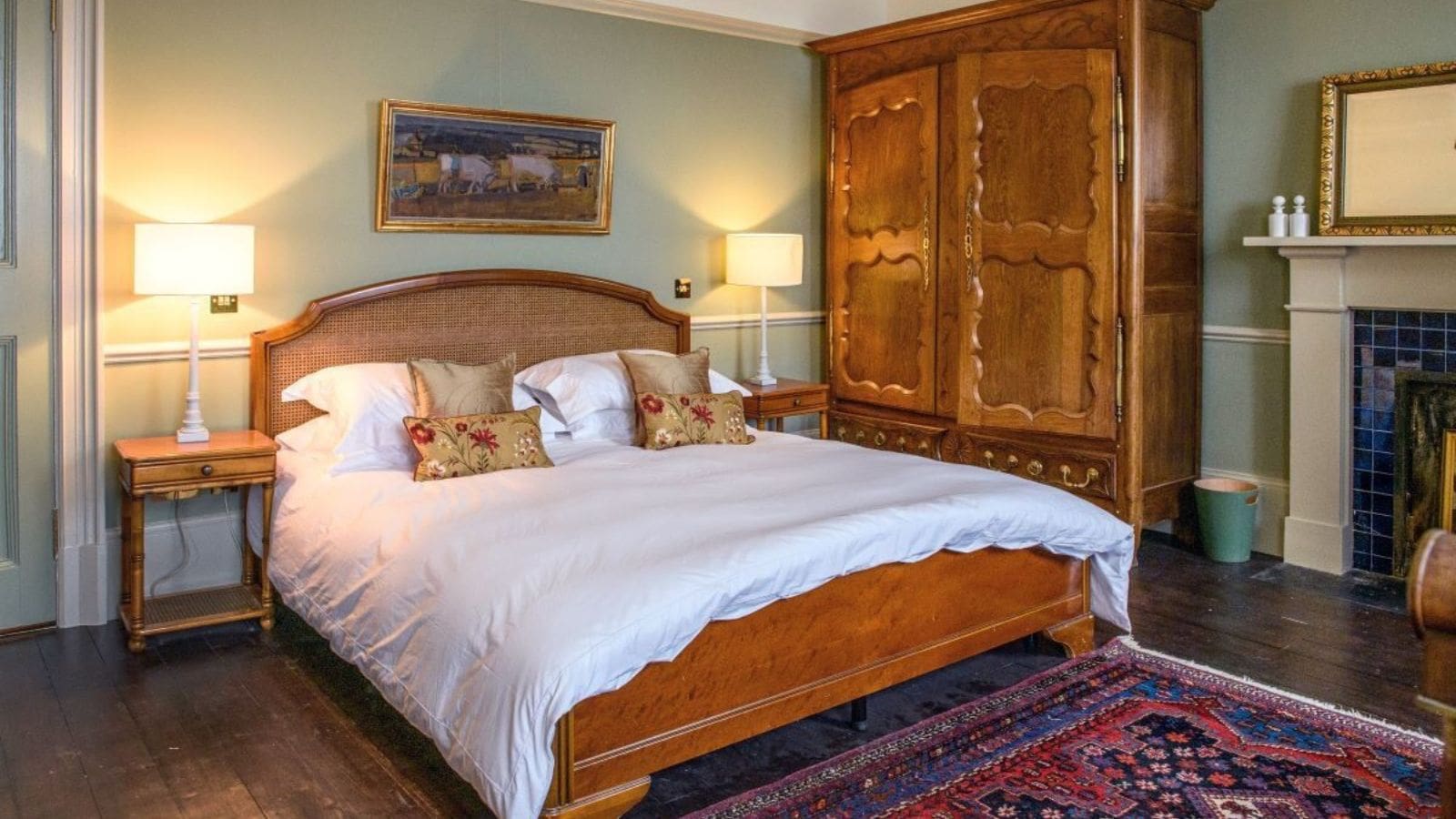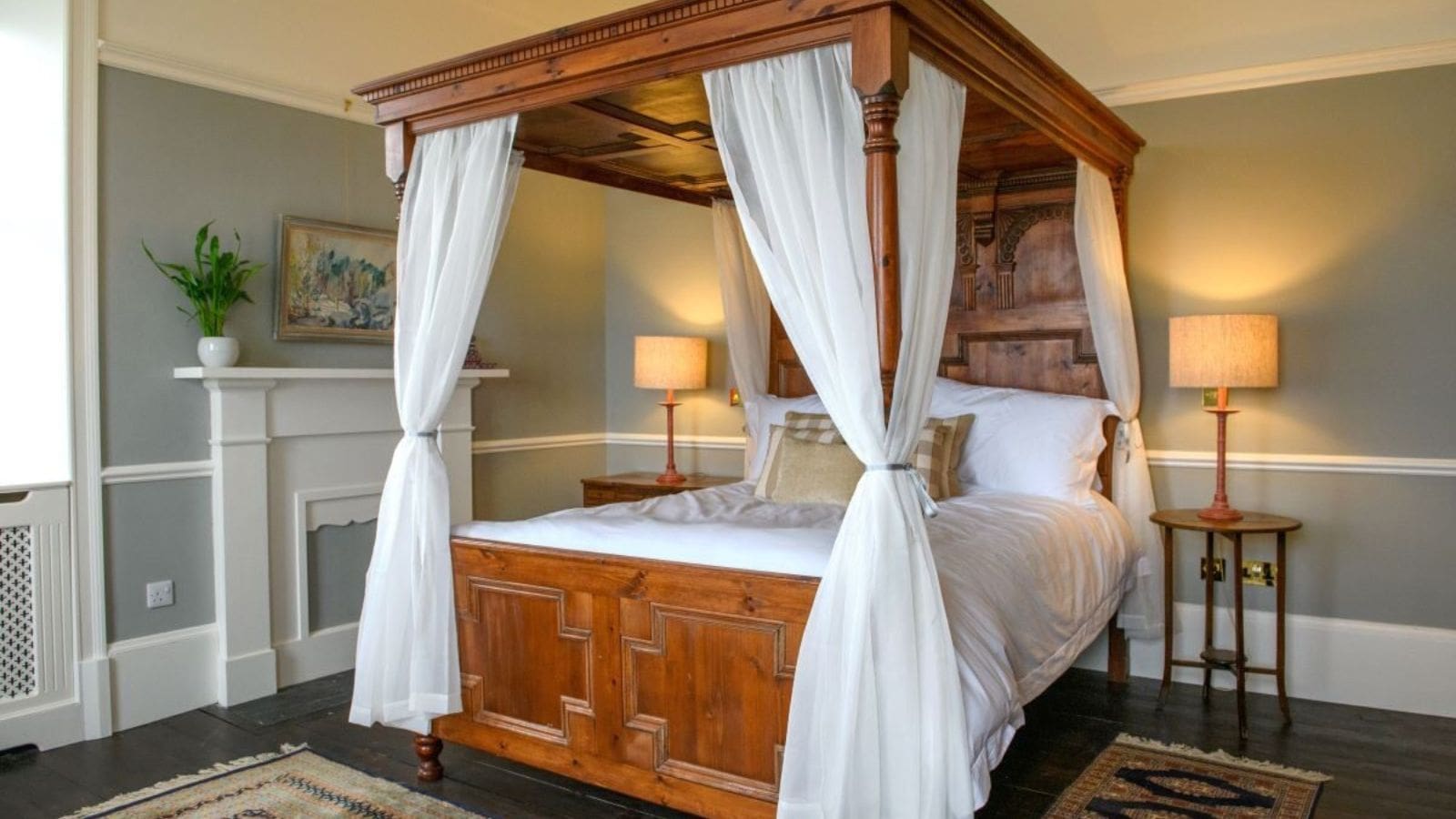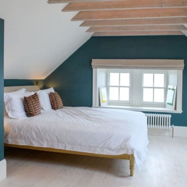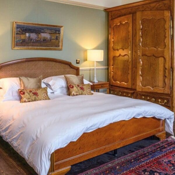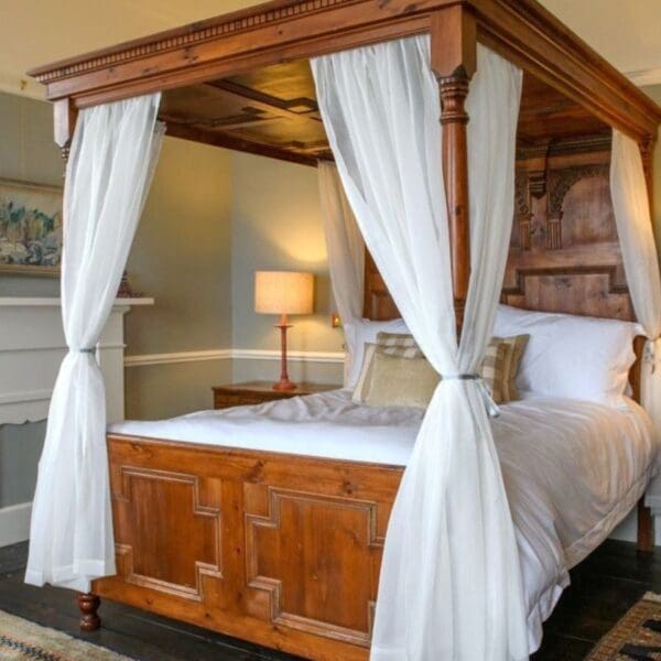 - Nine bedrooms; seven en-suite and two sharing a bathroom. “Bushta” features a four-poster bed and en-suite bathroom with turret shower with incredible views. Other rooms have super-king beds, some of which can be split into twin beds. There are roll-out beds for children and a downstairs room can be made into a bedroom for guests needing to avoid stairs.